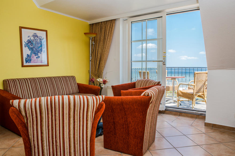 Blick auf die Ostsee. Das Appartement ist so eingerichtet, dass Sie mit 4 Personen hier gemütlich Platz finden.