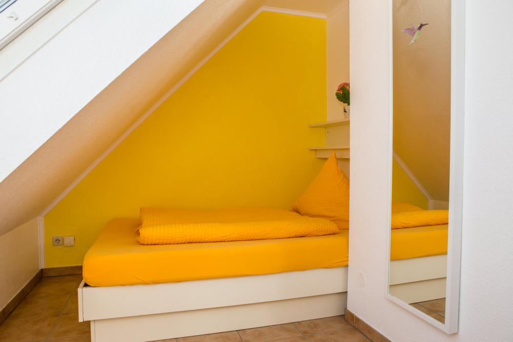 einem Schlafzimmer über einen Wohn-Schlafraum verfügt, welcher mit einer bequemen Doppelcouch ausgestattet ist.